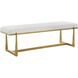 This Elegant Bench Adds A Touch Of Luxury To Any Room. The Textured Antique Gold Finish Iron Legs Perfectly Support And Accentuate The Upholstered Top In A Driftwood Toned Polyester Blend With Wool-like Texture.